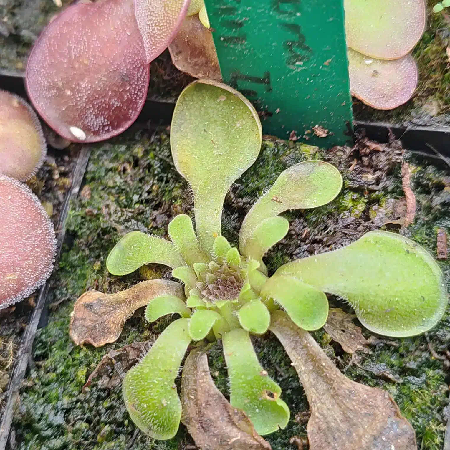 La Pinguicula Moranensis SG requiere muy poco mantenimiento, lo que la convierte en una planta ideal para principiantes o personas con agendas ocupadas. Prefiere un sustrato ligero y bien drenado, como una mezcla de turba y perlita. El riego debe hacerse con agua destilada, de lluvia o de osmosis inversa, evitando el agua del grifo para prevenir acumulación de minerales. Mantén el sustrato ligeramente húmedo, sin encharcarlo. Durante los meses más fríos, reduce la frecuencia de riego, ya que la planta entra en un período de menor actividad.